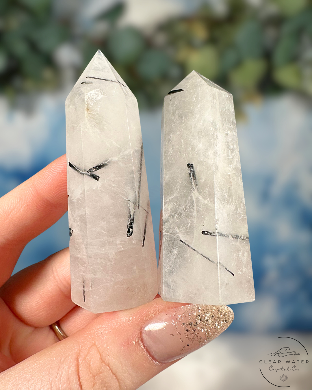 Each Black Tourmaline in Quartz Tower is a unique natural creation, varying in height, width, the specific patterns and density of the Black Tourmaline inclusions, and the clarity of the Quartz. You will receive an intuitively chosen tower that embodies the powerful protective and amplifying energy of this exceptional crystal.