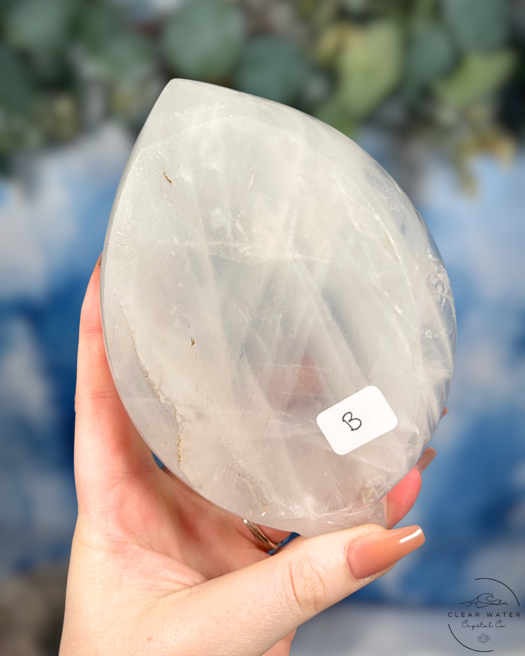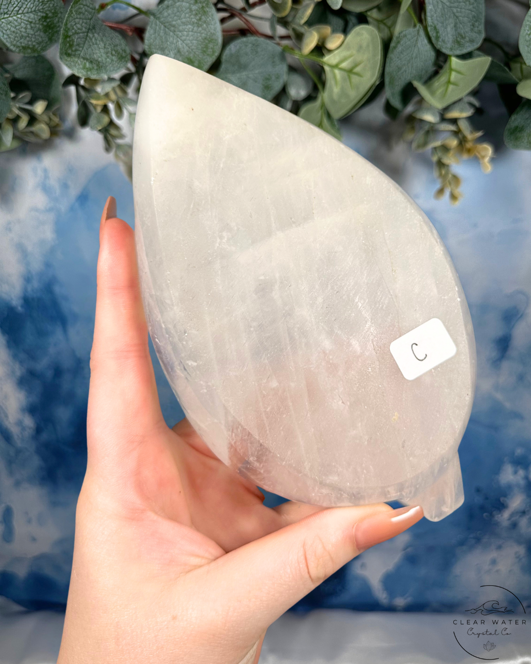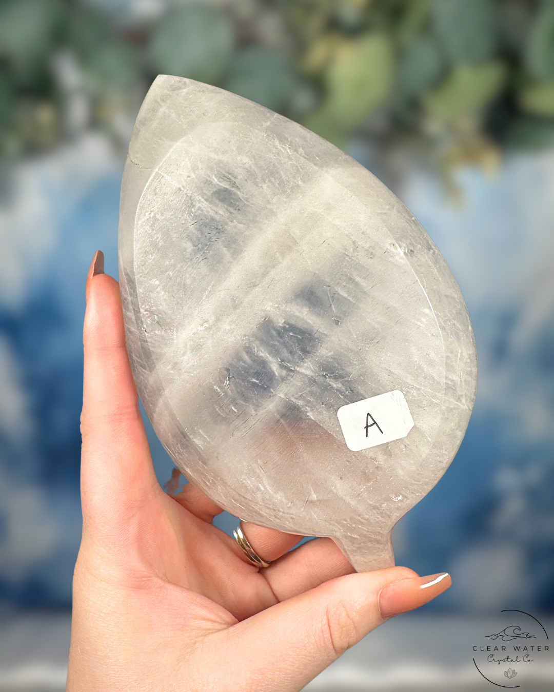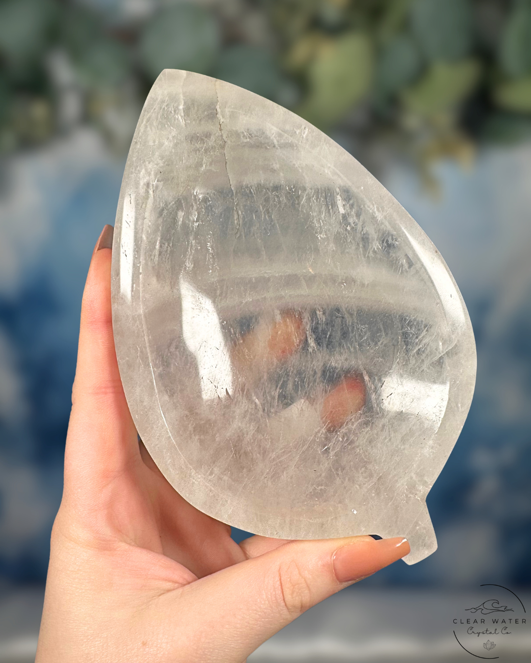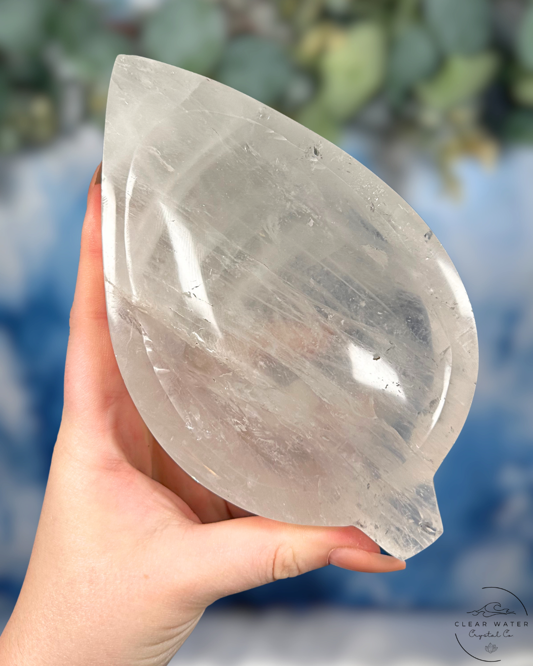 Carved from luminous clear quartz and shaped like delicate leaves, these bowls are both sacred vessel and sculpted spell. Clear quartz, known as the Master Healer, is a crystalline form of silicon dioxide that forms deep within the Earth under immense pressure. Prized for its purity and amplifying properties, it has been used in spiritual practices for centuries to cleanse, clarify, and connect.