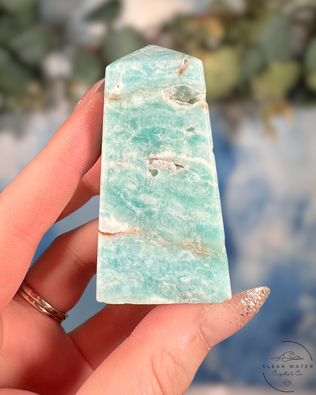 Elevate your spiritual space with our exquisite High-Grade Blue Aragonite Towers, directly from the esteemed mineral localities of Pakistan. Each tower is a testament to the Earth's tranquil artistry, expertly carved and polished to showcase the captivating serenity of this beautiful mineral. These towers radiate a calming blue energy, inviting peace, mental clarity, and heartfelt communication into your environment.