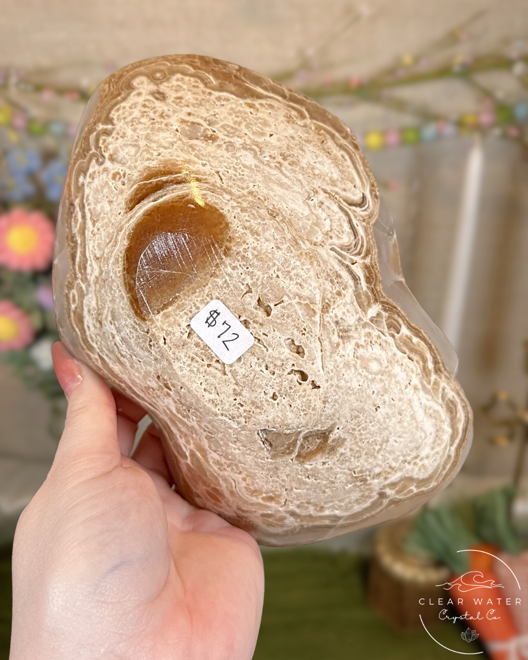 Warm, glowing, and beautifully organic, these large amber onyx bowls from Mexico showcase rich honeyed tones ranging from golden amber and caramel to creamy ivory. Natural banding flows through the stone, while the polished interior highlights the mineral’s gentle translucence, allowing light to pass through and illuminate the bowl with a soft, sunlit glow.