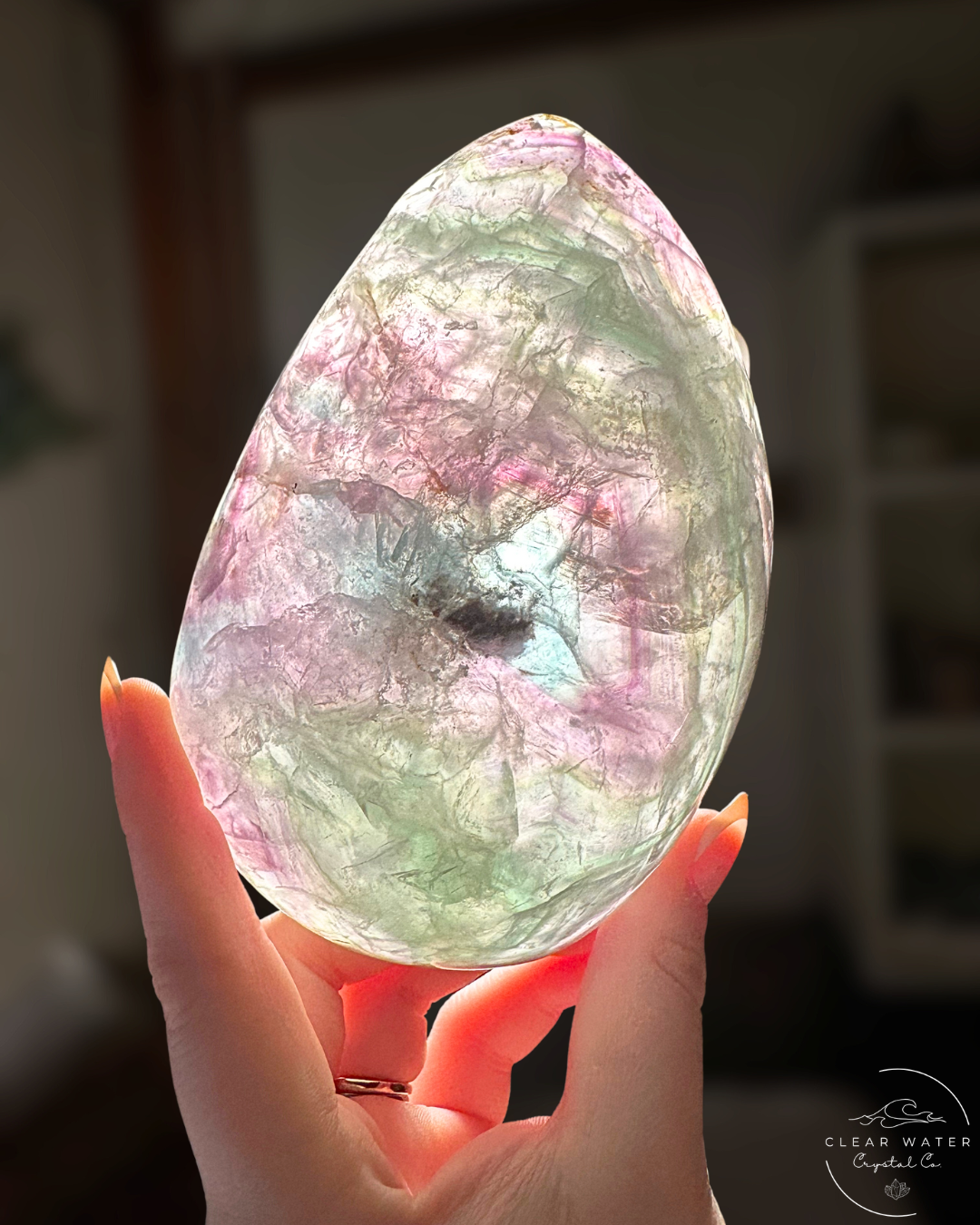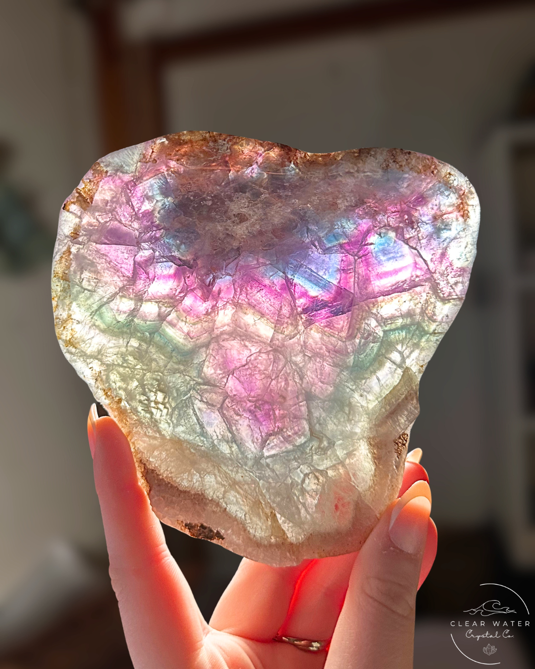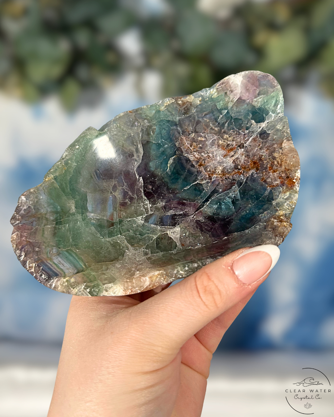 Each Raw-Edged Mexican Rainbow Fluorite Bowl is a unique creation of nature and human artistry. The specific colors, patterns, size, and raw edge formations will vary dramatically, ensuring that the bowl you receive is a one-of-a-kind treasure. The subtle rainbow iridescence will become spectacularly vibrant when backlit.