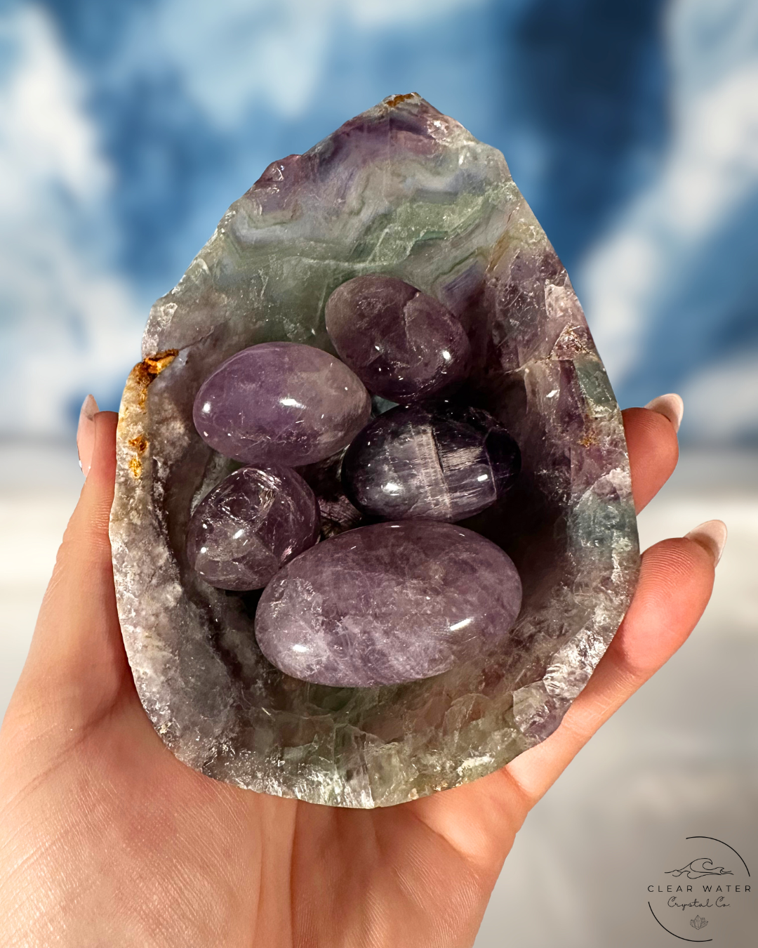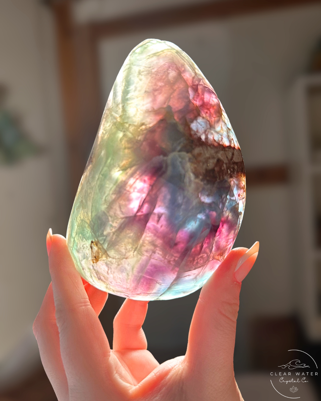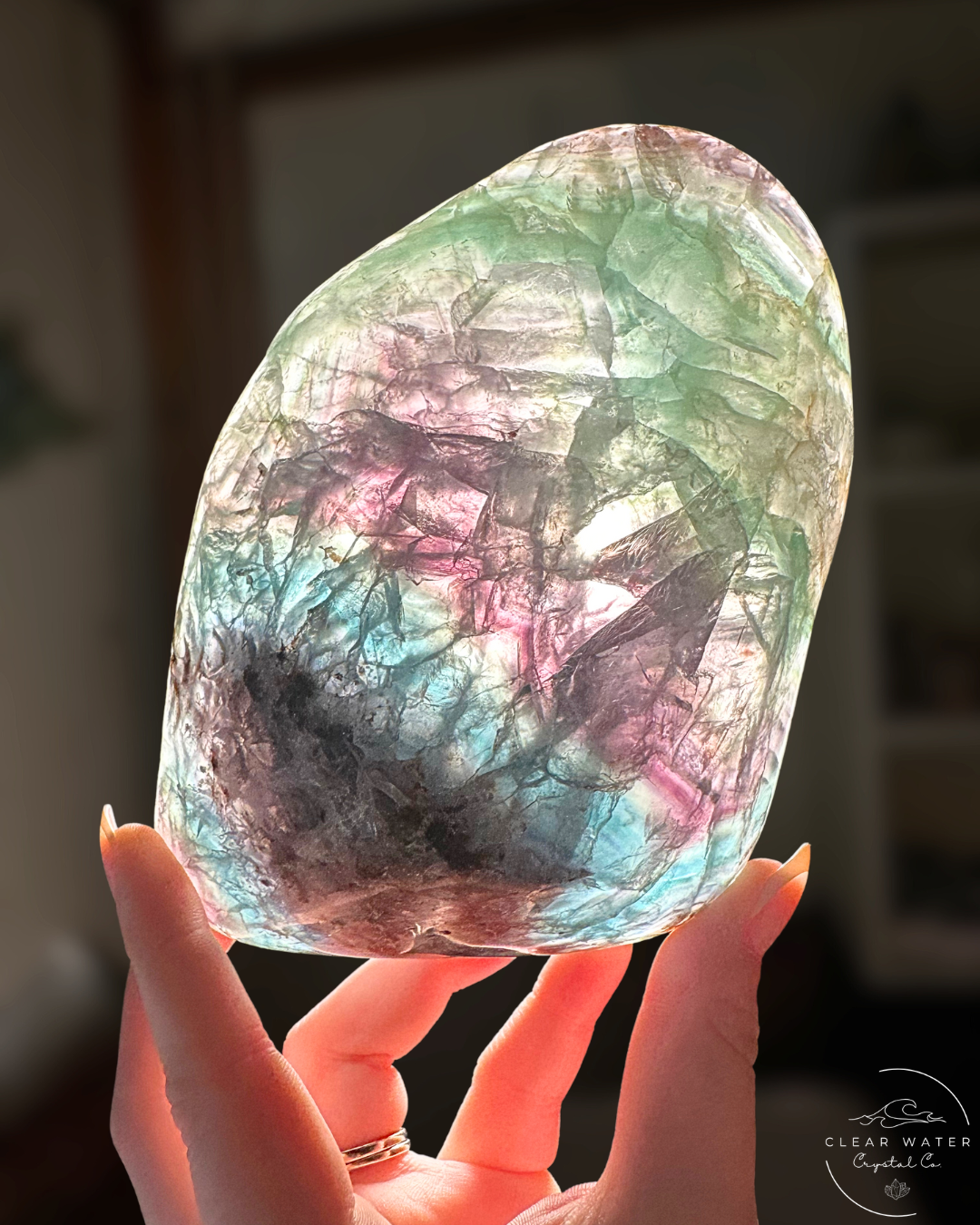 Each Raw-Edged Mexican Rainbow Fluorite Bowl is a unique creation of nature and human artistry. The specific colors, patterns, size, and raw edge formations will vary dramatically, ensuring that the bowl you receive is a one-of-a-kind treasure. The subtle rainbow iridescence will become spectacularly vibrant when backlit.