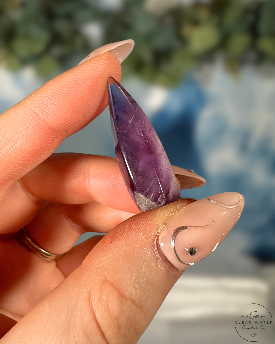 Each Mini Amethyst Flame Carving is a unique piece, showcasing its own beautiful variations in shade of purple and natural markings. You will receive an intuitively chosen flame that embodies the calming and spiritually uplifting energy of Amethyst in a perfectly petite form.
