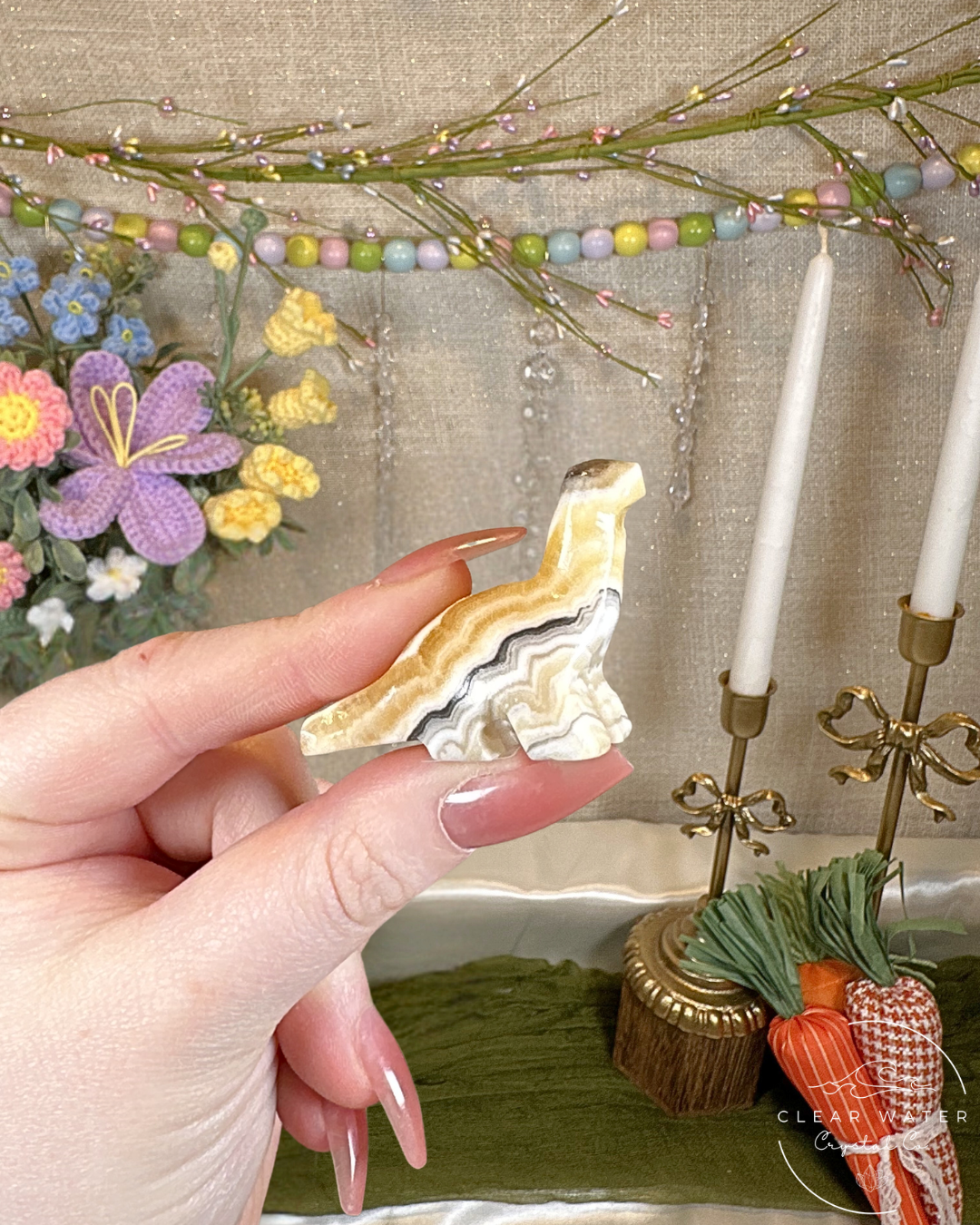 Carved into the gentle giant brontosaurus shape, these pieces add a fun prehistoric touch to your crystal collection while symbolizing steadiness, strength, and peaceful resilience.